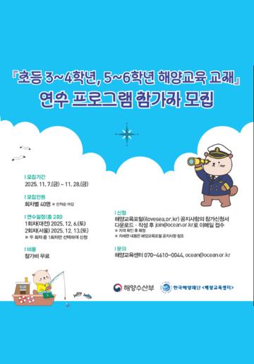 초등 3~4학년, 5~6학년 해양교육 교재 연수 프로그램 참가자 모집