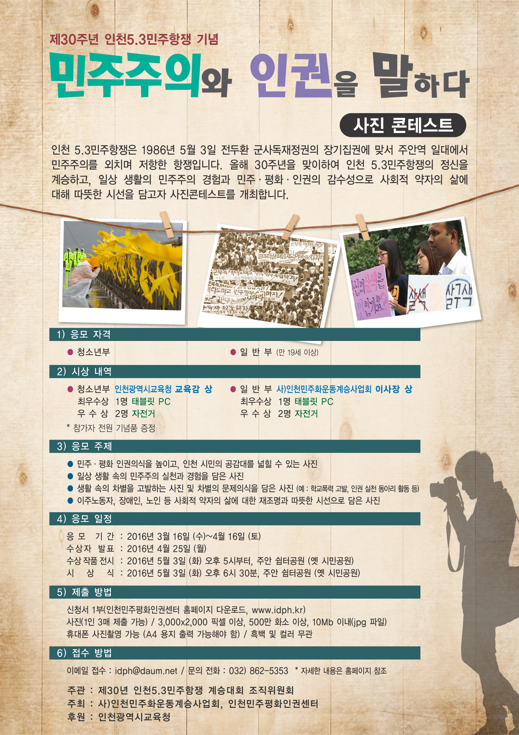 - 민주·평화·인권의식을 높이고, 인천 시민의 공감대를 넓힐 수 있는 사진