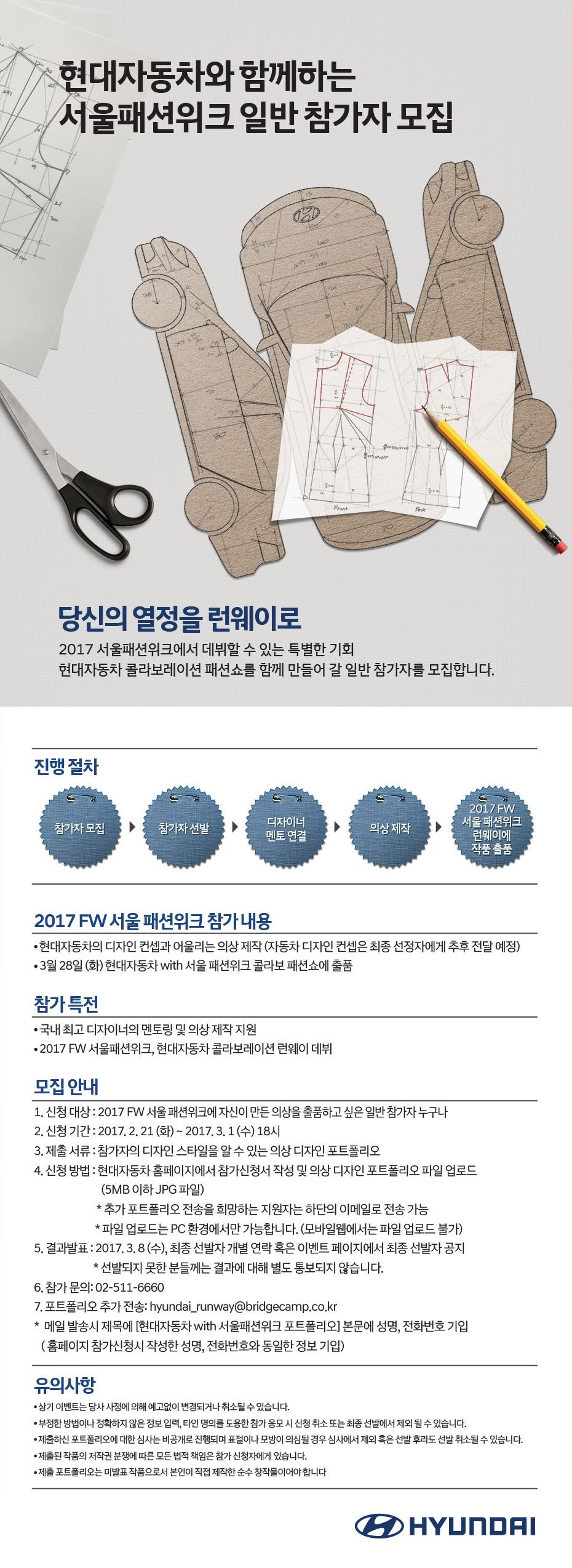 - 2017 FW 서울패션위크에 자신이 만든 의상을 출품하고 싶은 일반 참가자 누구나