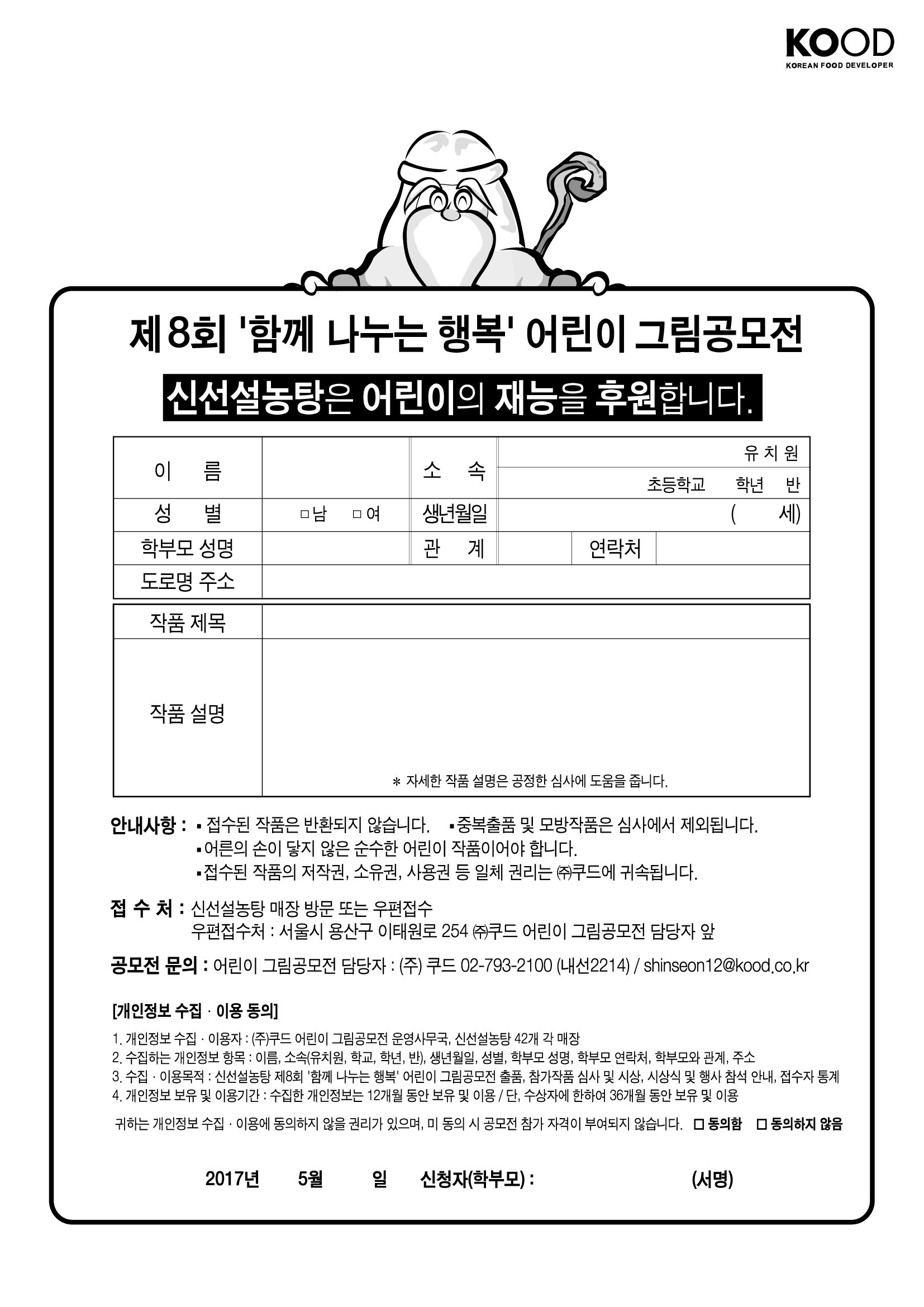 - 서울시 용산구 이태원로 254 ㈜쿠드 어린이 그림공모전 담당자 앞