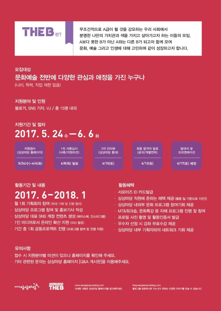 KT&G 상상마당 ' The B' 14기를 공개모집합니다! (5/24~6/6)
