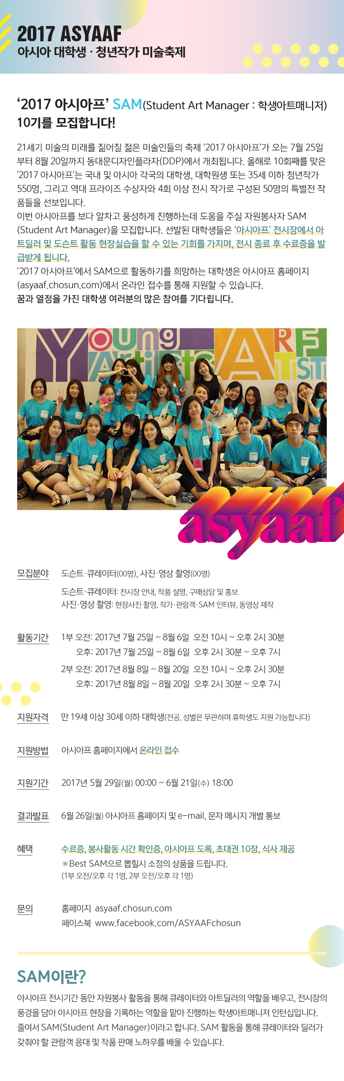 <2017 아시아프> 학생아트매니저 (SAM: Student Art Manager)를 모집합니다
