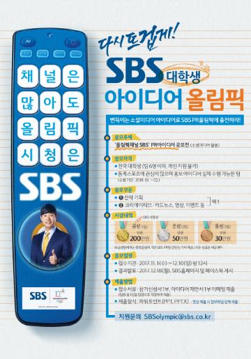 - 금상(1팀) : 상금 200만원, SBS 사장상 (평창올림픽 기간 SBS PR팀 인턴십 기회 제공)