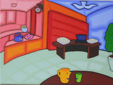 □ 행복을 담는 용기로서 ' 집' 은 실제 열 개의 가족의 생활공간을 모델로 하고 있는데, 작가는 그들의 실내 풍경을 그리며 가족들의 행복을 기원하는 마음까지 담고자 했다.