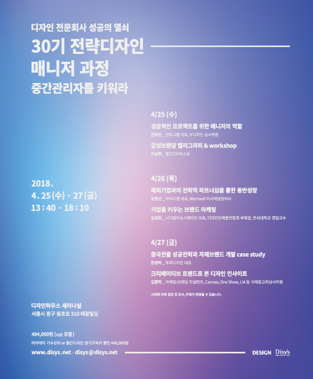 수강료 : 484,000원 / 기수강자 or 월간디자인 정기구독자 440,000원