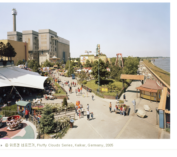 위르겐 네프쯔거는 ‘Fluffy Clouds’(솜털 구름) 시리즈에서 원자력발전소를 일상생활의 배경 속이나 여가생활 속에서 마치 보이지 않는 혹은 적어도 이들 주변의 사람들이 전혀 인식하지 못하는 존재로 등장시킨다. 드넓은 지평선이 펼쳐진 시골풍경과 아기자기한 집들, 숲 속의 작은 쉼터, 예쁜 놀이공원의 일부인 것처럼 너무나 완벽한 조화를 이루며 숨겨져 있는 원자력발전소의 모습에서는 그 어떤 불안함이나 위험이 감지되지 않는다. 다만 모호함만이 있을 뿐이다. 그러나 작가는 매혹적인 것과 우리가 보기를 두려워하는 것이 동시에 존재하는 이 모호함을 통해서 ‘현대의 삶’에 내포된 모순을 완벽히 인식하도록 한다.