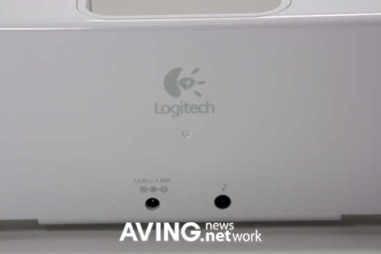뒷면은 아주 심플한 모습을 지닌다. '로지텍'의 큰 로고와 함께 전원 입력부와 외부기기 입력부로 나뉜다. 양쪽 하단의 다리(지지대)는 미사용시에는 안으로 접어 넣어서 케이스에 수납할 수 있다.
