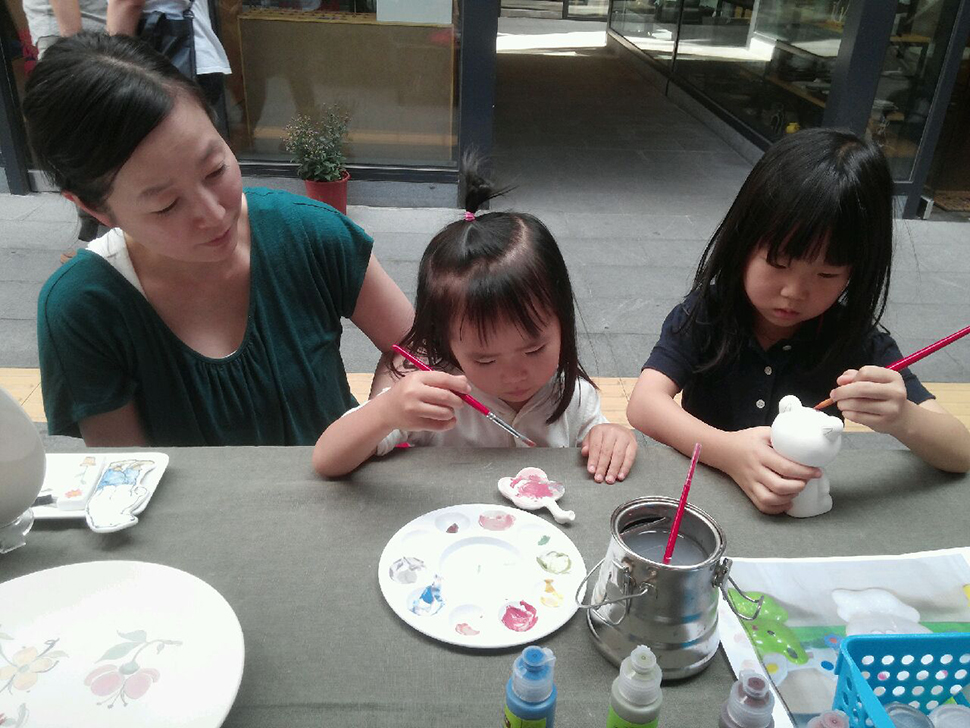둘째 아이를 출산한 후에는 일을 하면서 대학원까지 다녔다. 학부에서는 산업디자인, 패션을 전공했지만 대학원에서는 오래전부터 그녀의 관심사였던 ‘핸드드로잉을 이용한 우연적인 기법’에 대해 연구했다. 아이의 그림을 활용하게 된 것도 그때부터였다.