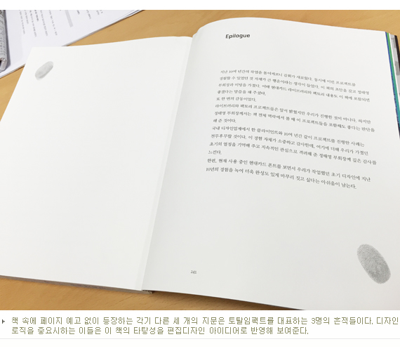 지난 1년반에서 2년동안 프로젝트의 전 과정을 담기 위해 토탈임팩트가 직접 그 내용을 작성했지만, 많이 부족하고 아쉬운 것이 사실이다. 지난 10년여 동안의 결과물 중 일부 프로젝트만 책에 담아냈기에 토탈임팩트가 진행해왔던 디자인 작업의 정수, 혹은 전체 맥락을 파악하기에는 아무래도 한계가 있다. 하지만, 디자인 프로젝트 하나의 과정을 책 한 권에 담아냈던 경우는 드문 일이기에 이런 이야기들을 시작하는 것은 의미 있는 일이라 생각한다.