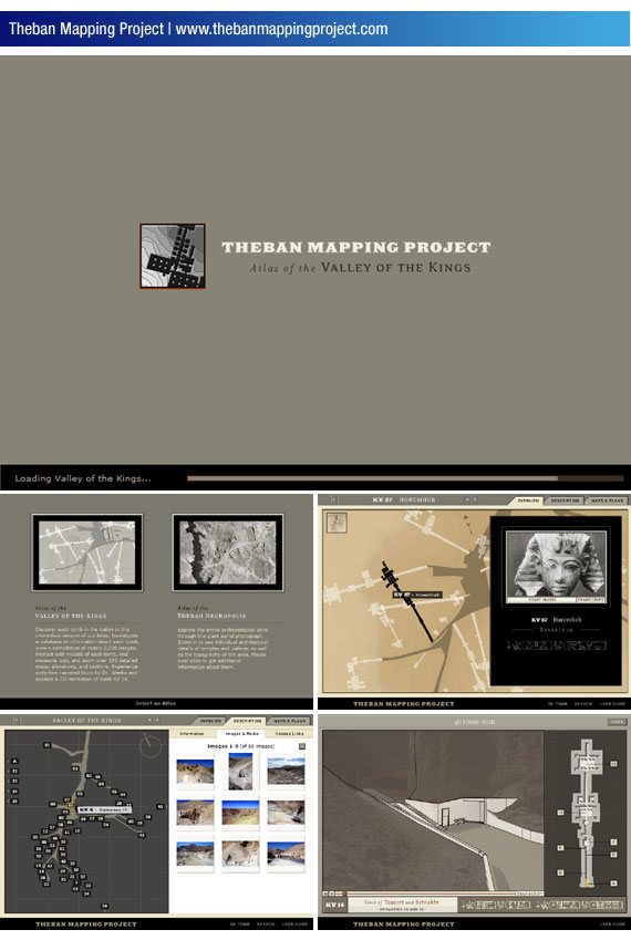 고대 문화의 시작이기도 하며 정점이기도 한 이집트에 대한 역사적인 자료를 재건하고 새롭게 재구성하기 위해 제작된 이 사이트는 프로젝트 연구의 시간과 비례하여 그 공력의 힘으로 구축된 사이트라고 할 수 있다. 고대를 거슬러 올라가는 시간의 축적된 데이터를 가장 현대적인 디지털 미디어의 툴을 이용하여 매우 정교하게 결합하고 구성한 이 사이트는 인터랙티브 정보 디자인의 교과서적인 해답을 보여주는 듯하다. 3D로 모델링한 구조물의 프리젠테이션은 이미 전형적인 멀티미디어 정보 시각물의 표현이긴 하지만 천박한 테크닉을 앞세운 여타 플래쉬 3D와 비교할 수 없을 정도로 정제되어 있으며 네러티브 또한 간결하고 세련되었다.