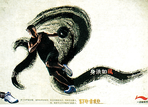 이 광고는 시각적 효과가 아주 눈에 띈다. 광고에 이용한 동양의 신비하고 기품이 넘치는 서예의 예술적 특징은 중국문화의 요소를 취한 것이다. 제품의 특성과 기막히게 들어맞고 있으며 아주 높은 수준으로 이끌어 올렸다. 힘이 있는 필촉과 바람의 웅대한 기세가 드러나는 점은 전체적인 느낌이 대담하고 개방적이고 혁신적인 예술의 혼을 느끼게 한다. 동양적 요소를 사용한 아주 성공한 작품이라 할 수 있다.