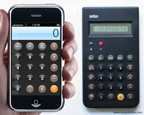 아이폰 초기 모델(OS 1.0)의 계산기 앱. 램스가 디자인한 브라운 계산기와 디자인이 똑같습니다.