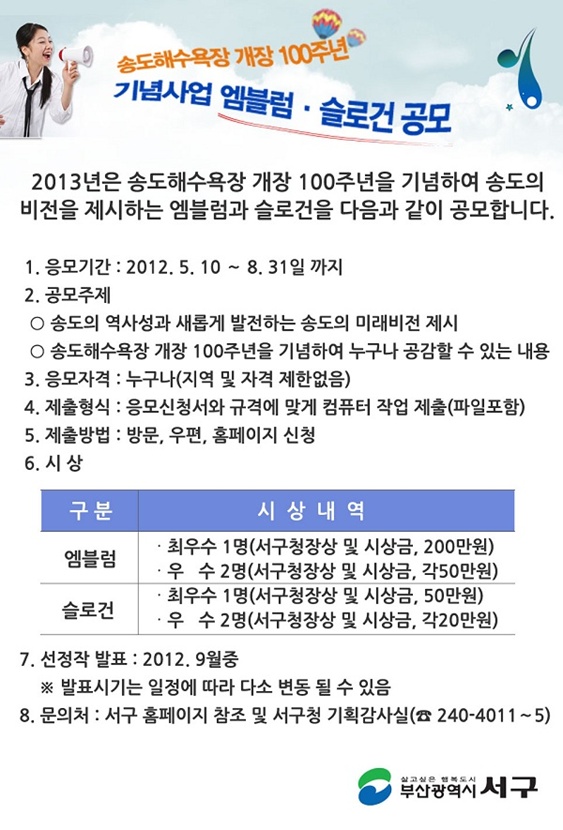 공모신청서는 서구 홈페이지(http://bsseogu.go.kr) 또는