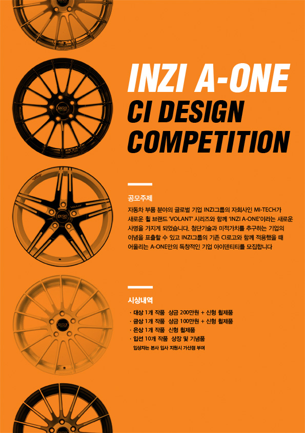 - 자동차 부품 분야의 글로벌 기업 INZI그룹의 자회사인 MI-TECH이 새로운 휠 브랜드 “VOLANT” 시리즈와 함께 “INZI A-ONE”이라는 새로운 사명을 가지게 되었습니다.