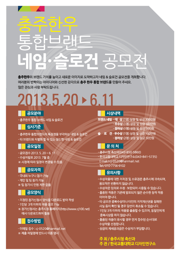 | 슬로건 | 우수상 | 1명 | 100만원 |