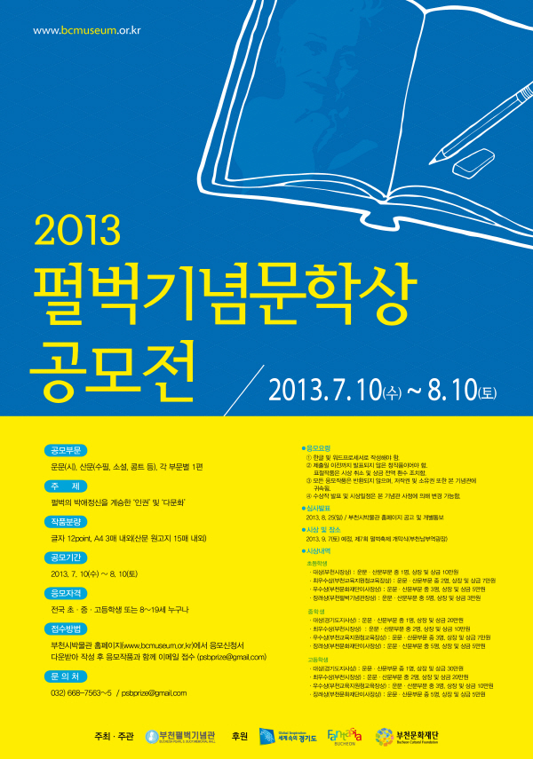 - 시상식 : 2013. 9. 7(토) 예정 / 제7회 펄벅축제 개막식(부천역잔디광장)