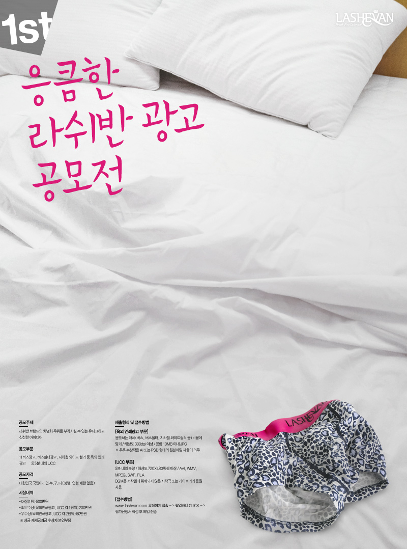 - 수상작품에 대한 저작권 및 소유권은 ㈜라쉬반에 귀속되며, 참여작품은 필요에 따라 가공, 재편집되어 홍보영상물, 광고, 전시, 인쇄물, 인터넷, 기타 캠페인 등에 참고 및 활용할 수 있습니다.
