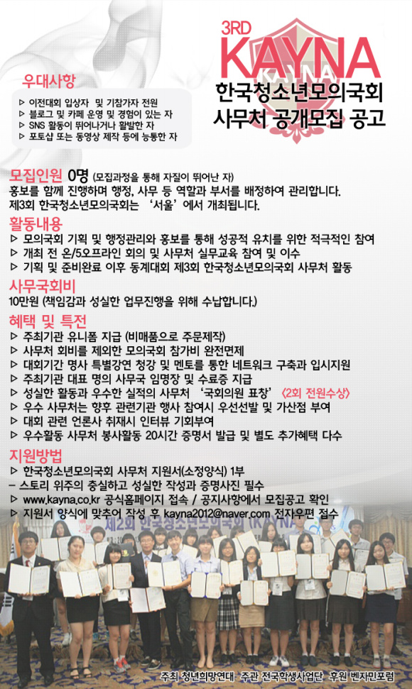 제3회 한국청소년모의국회(KAYNA) 사무처 모집공고