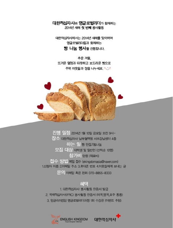 대한적십자사에서는 2014년 새해를 맞이하여 영글로벌리더들과 함께하는 빵 나눔 행사를