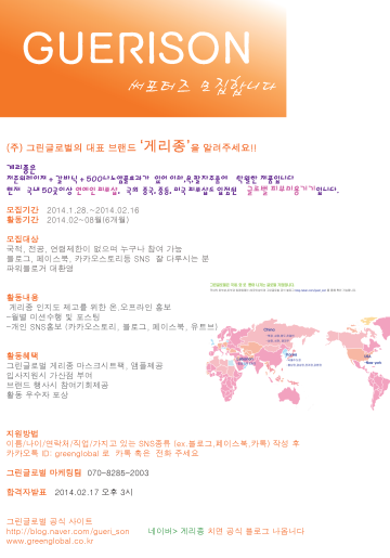 (주) 그린글로벌의 대표 브랜드 ‘게리종’을 알려주세요!!