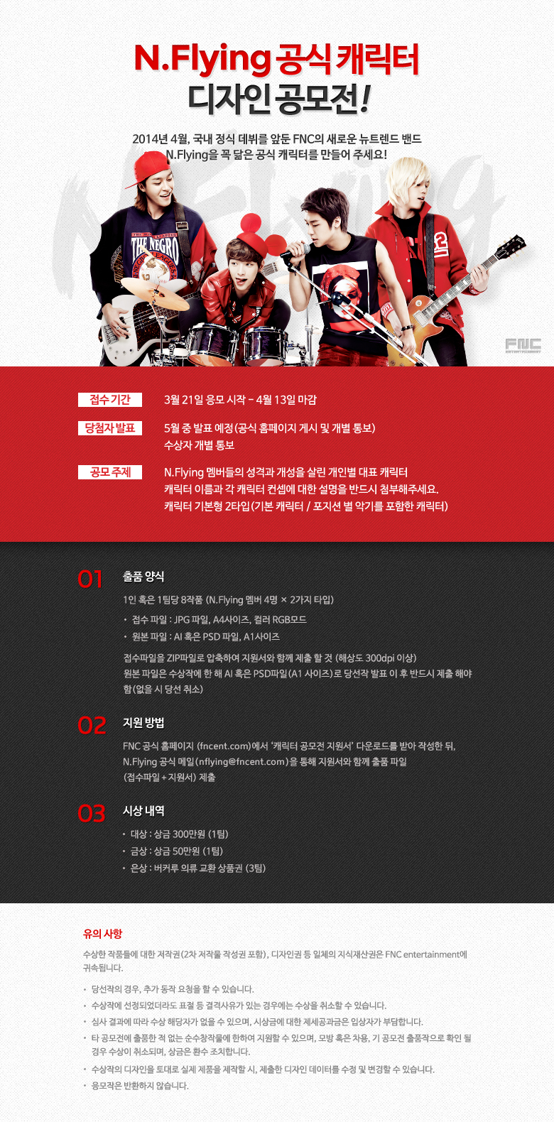 - FNC 공식 홈페이지 및 N.Flying 공식 페이스북 게시 / 수상자 개별 통보