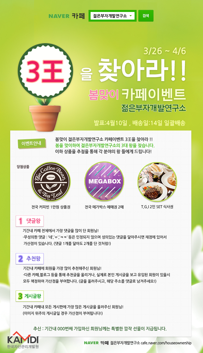 - 봄맞이 젊은부자개발연구소 카페이벤트 3王을 찾아라!