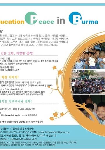 한-버마의 교육에 대해 함께 성찰해보는 시간 P(Peace) 머리와 마음으로 이해하는 민주주의와 평화 Peace& Open Society : 8888세대 학생 활동가들이
