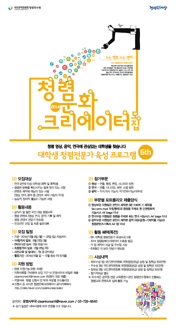 대학생 청렴전문가 육성프로그램 6th 2014 청렴문화크리에이터 모집