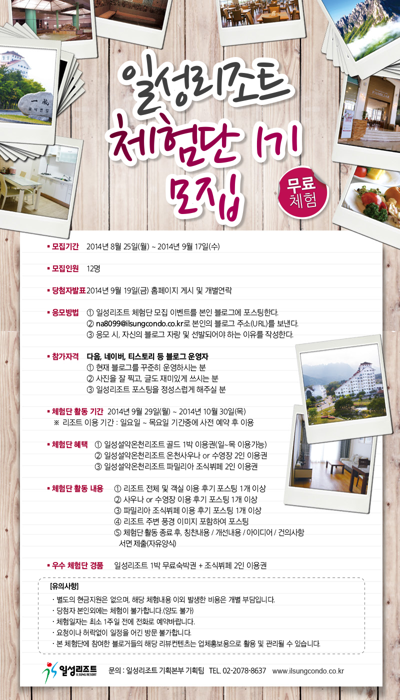 일성리조트 체험단 1기 모집