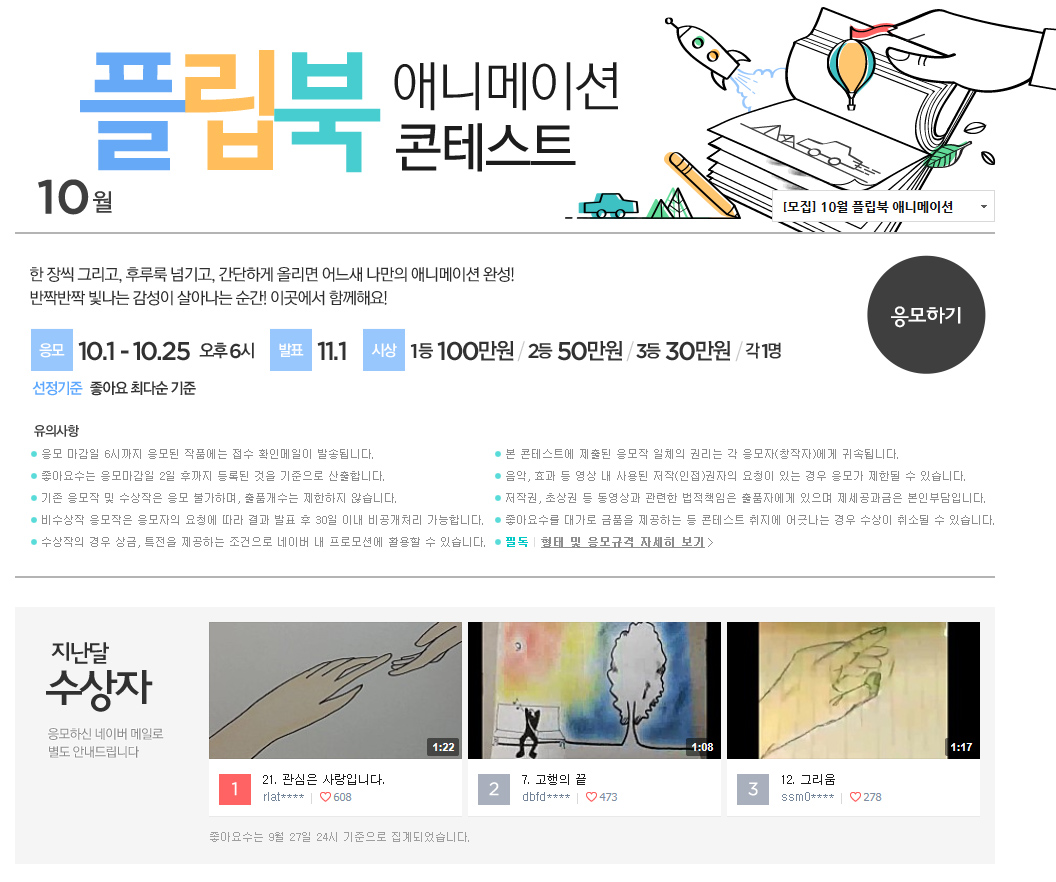 - 한 장씩 그리고, 후루룩 넘기고, 간단하게 올리면 어느새 나만의 애니메이션 완성!