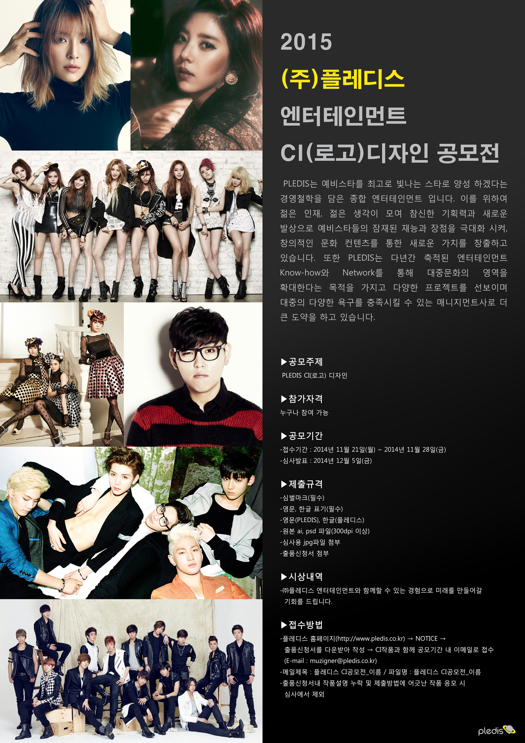 - 플레디스 홈페이지(http://www.pledis.co.kr) → NOTICE → 출품신청서를 다운받아 작성 →