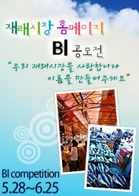 재래시장의 다양한 정보와 모델을 수립하고, 각종 온라인 매체를 연계시킴으로써 재래시장을 경쟁력있는 생산공간으로 탈바꿈 할 수 있는 계기를 마련하고자 재래시장 온라인 쇼핑몰 및 홈페이지 구축사업에 사용될 재래시장 온라인 BI에 대한 여러분이 창의적인 생각을 모집하고자 합니다.