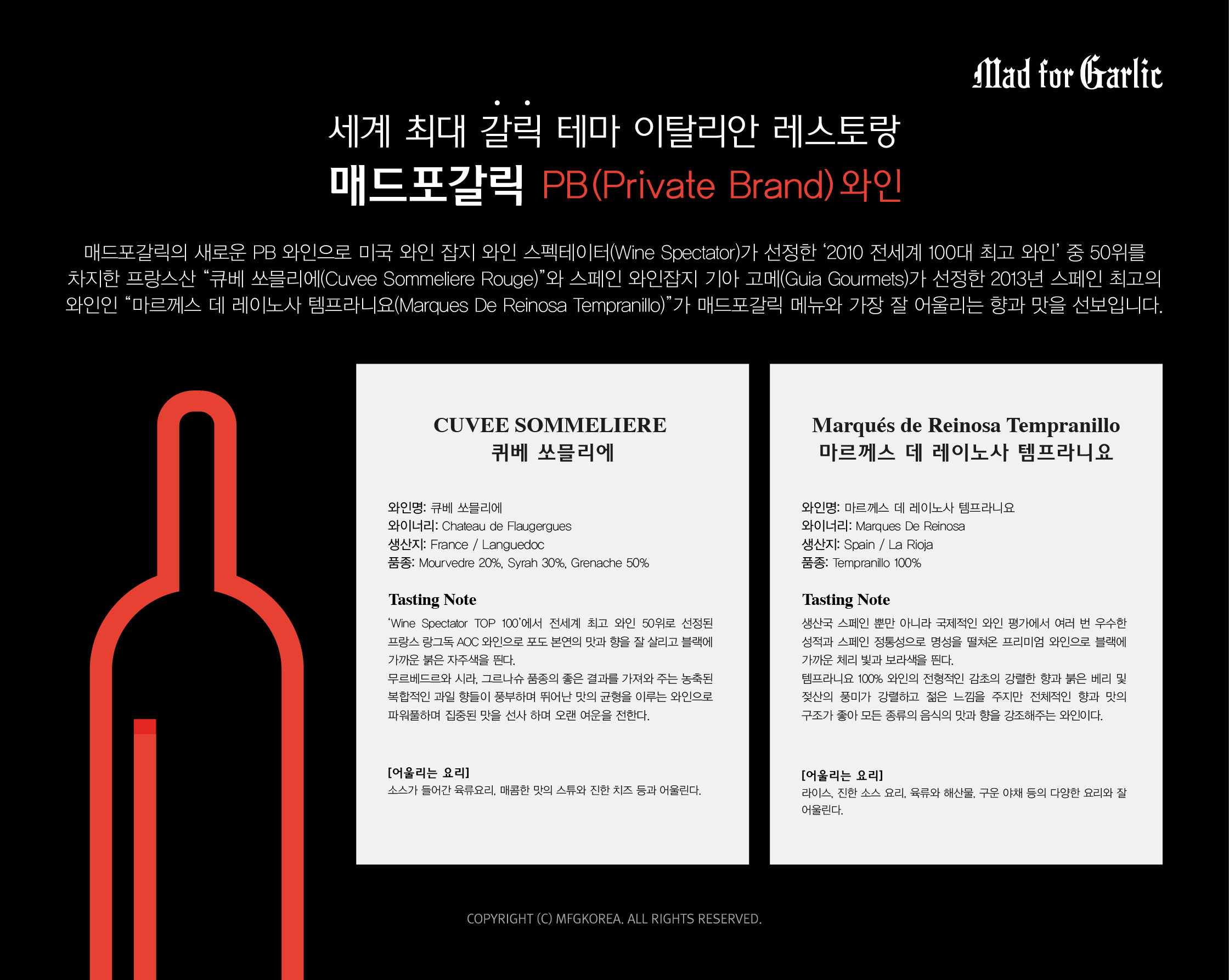 - PB 와인 2종에 대한 정보는 매드포갈릭 홈페이지 이벤트 페이지에서 확인 가능 대상