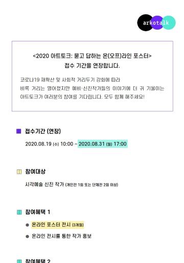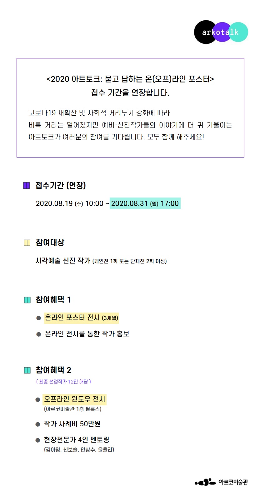 2020년 아르코미술관 전문인교육 <아트토크 : 묻고 답하는 온(오프)라인 포스터> 예비⸳