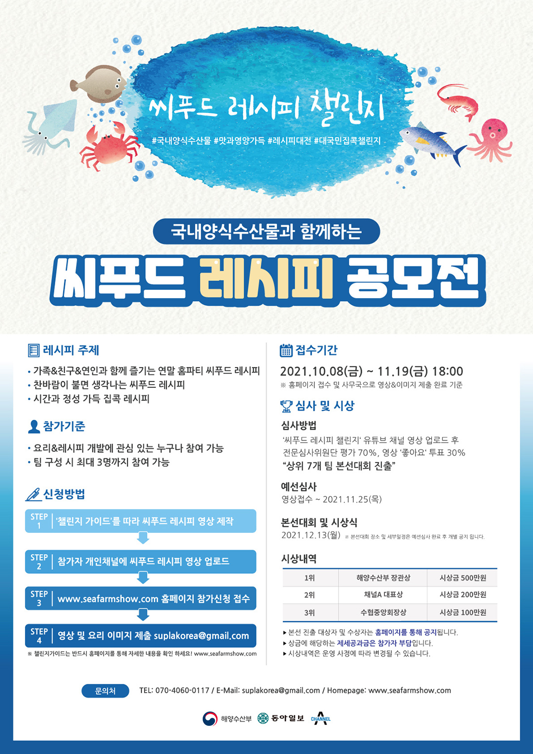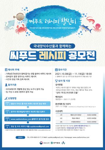 - 참가방법에 대한 상세내용은 홈페이지 씨푸드 레시피 챌린지 메뉴에서 확인 가능합니다.