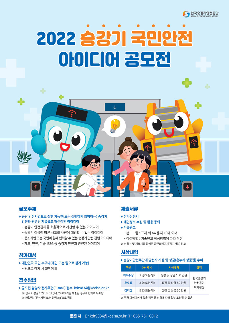 - 제도, 안전, 기술, ESG 등 승강기 안전과 관련된 아이디어
