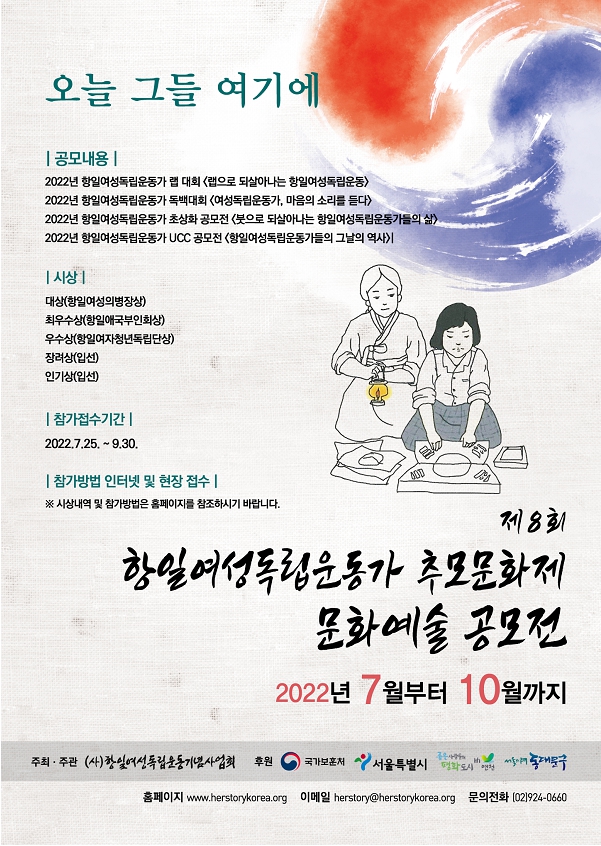 - 모든 수상작은 본회 유투브<항일여성TV>와 홈페이지, SNS계정에 게시됩니다.