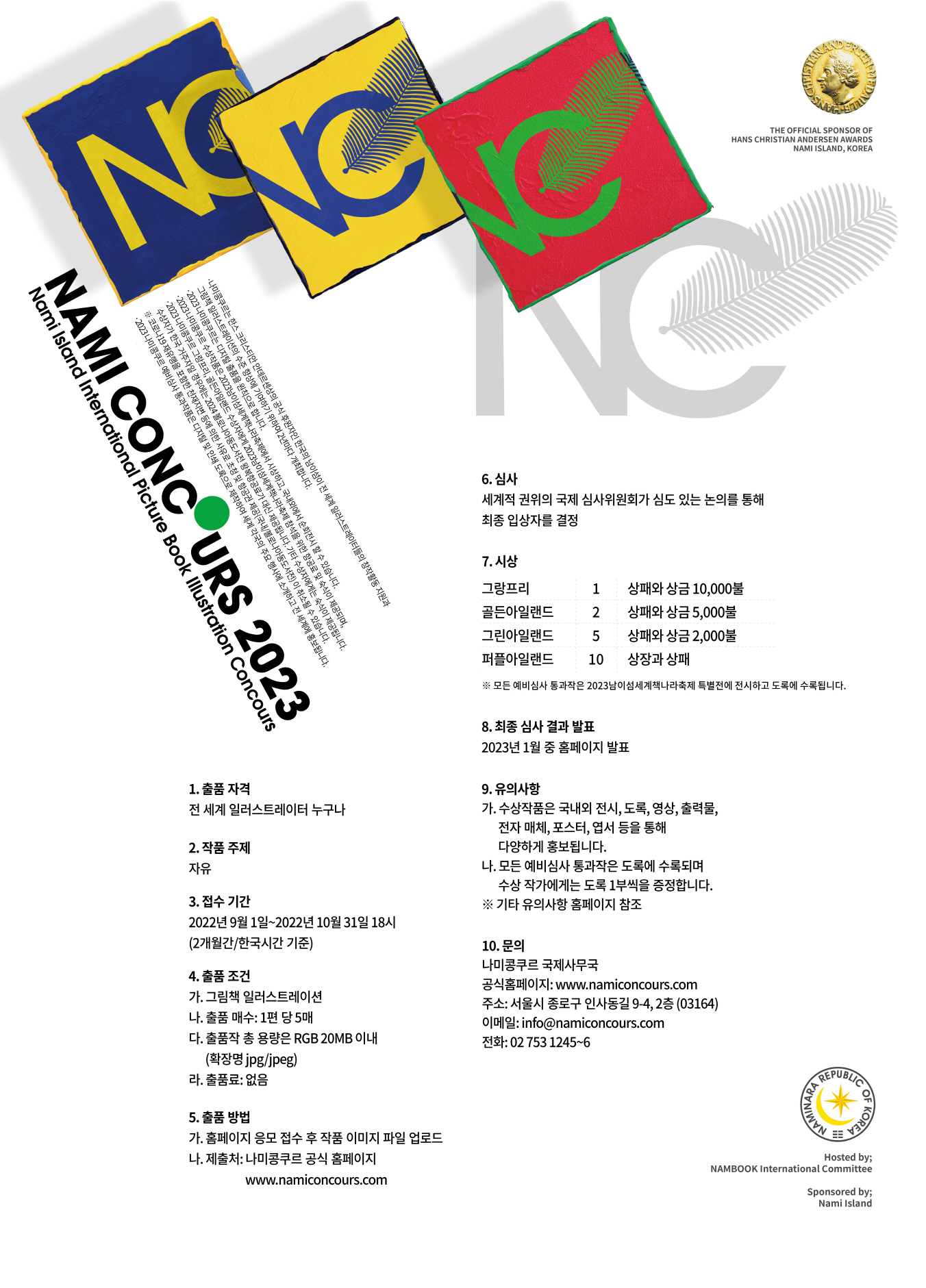 ※모든 예비심사 통과작은 2023남이섬세계책나라축제 특별전에 전시하고 도록에 수록됩니다.
