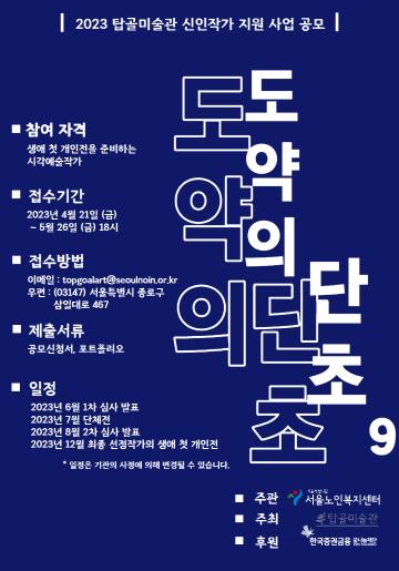 탑골미술관에서는 현대예술을 이끌어 갈 신인 작가 지원을 위해 <도약의 단초9> 공모접수를 5월 26일(금)까지 진행하오니 신인작가분들의 많은 관심과 참여 부탁드립니다.