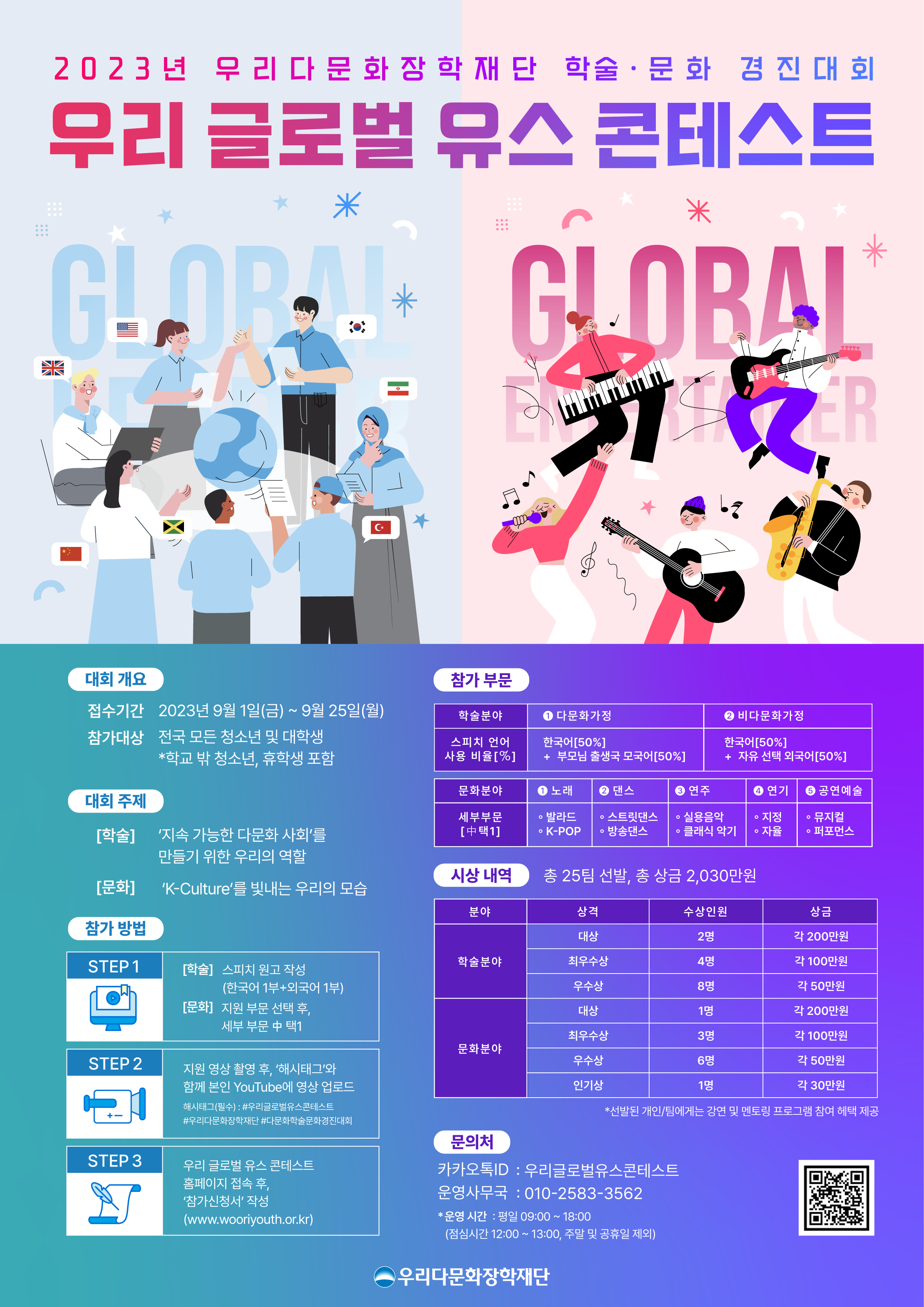 - 카카오채널 ID :우리글로벌유스콘테스트 (https://pf.kakao.com/_xkAHxdG)