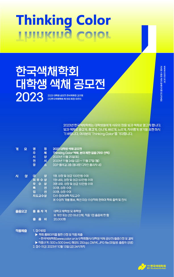 1. 명 칭 : 2023 한국색채학회 대학생 색채 공모전