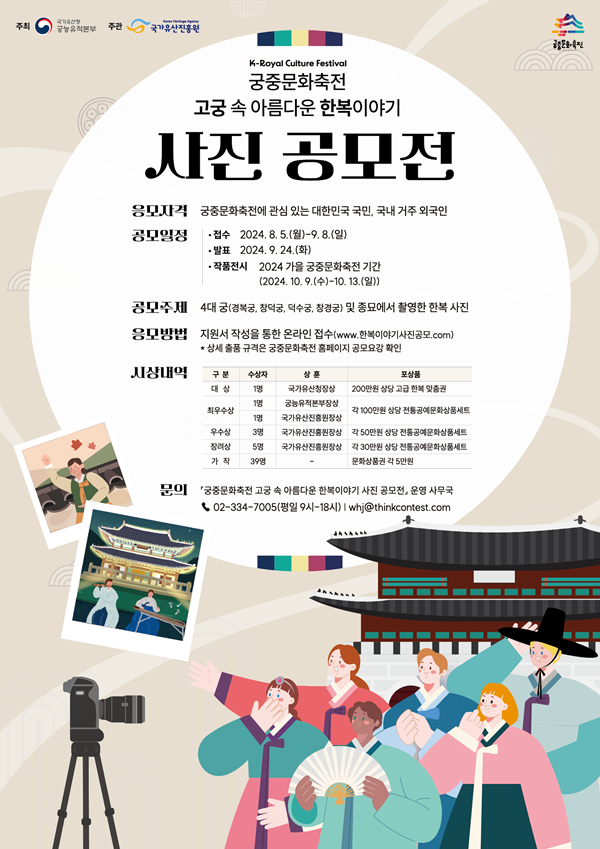 * 최근 1년 이내(공고마감일 기준:2023.09.08.~2024.09.08) 4대궁 및 종묘에서 촬영한 사진(단, 초상권에 저촉되지 않는 사진이어야함)