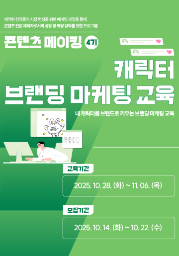 ▶ 모집대상: 자신의 캐릭터 및 브랜드의 홍보/마케팅에 관심 있는 예비 창업·창작자 20명