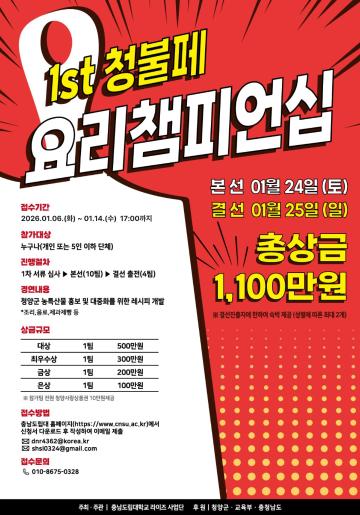청양군 능특산물을 알리기 위한 요리경연대회를 개최합니다.