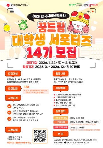 2026 한국지역난방공사 꿈드림 대학생 서포터즈 14기를 모집합니다!