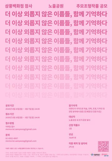 - 삼풍백화점 참사 희생자를 추모하고, 재난의 기억과 교훈을 다음 세대에 전달하기 위한 추모조형작품 및 추모공간 디자인 공개모집