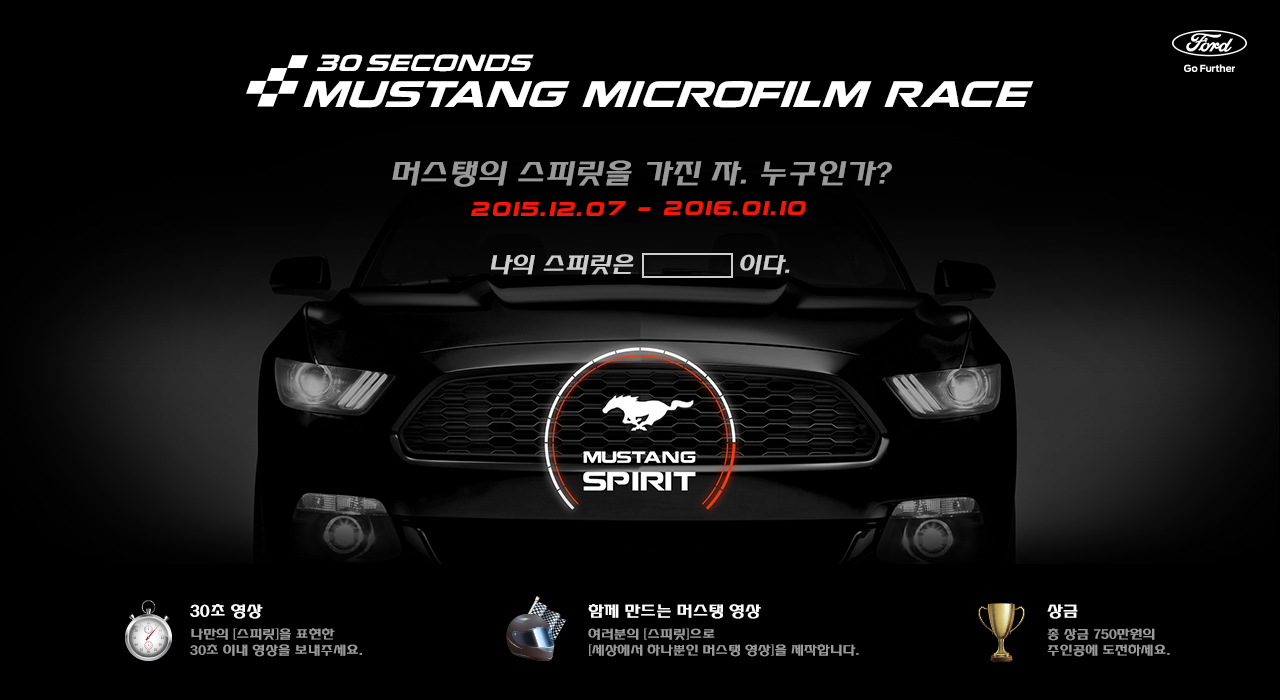 - 머스탱과 연결되는 나만의 [스피릿]을 표현한 30초 이내 영상 제출