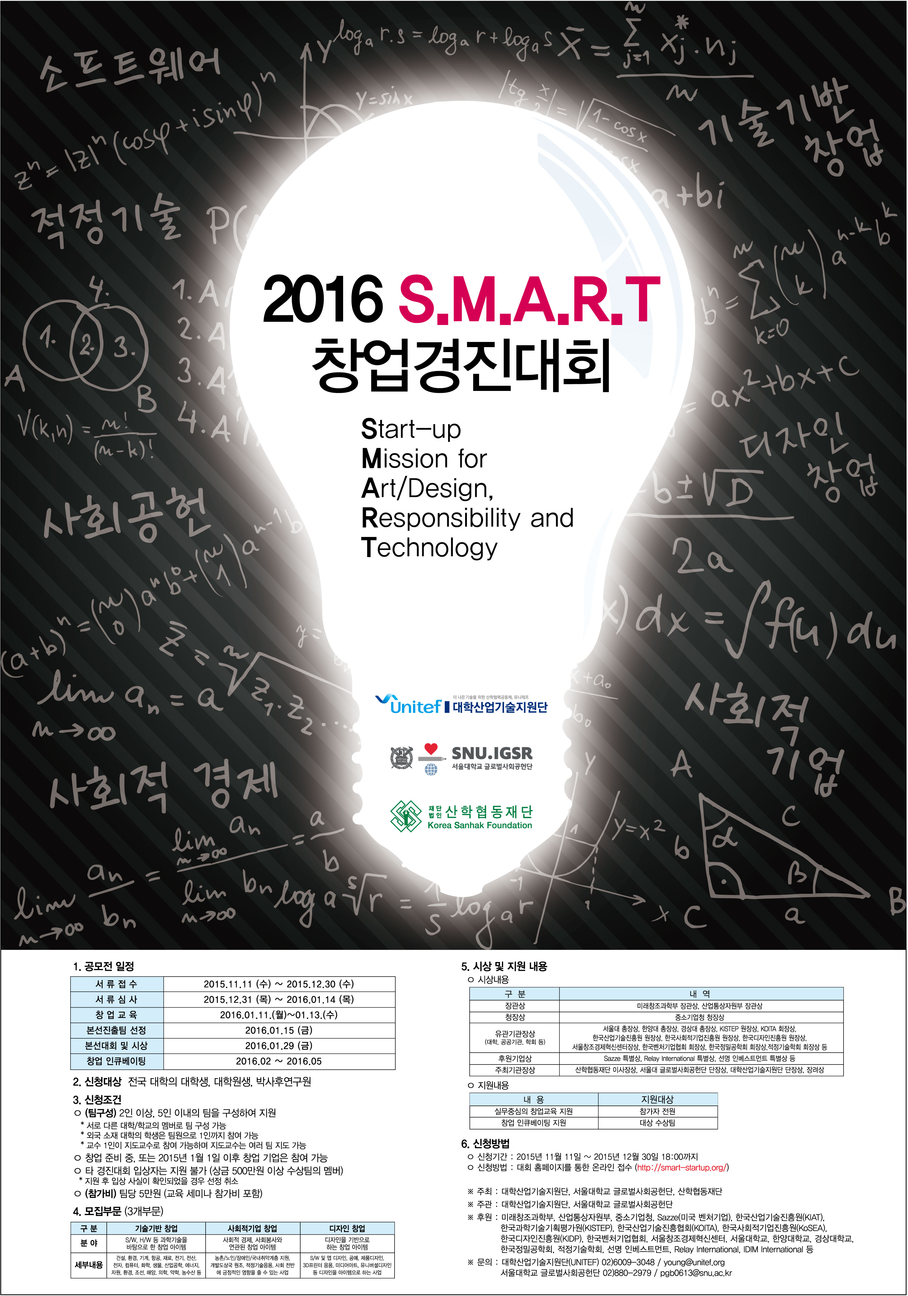 - 본선대회 및 시상 : 2016.01.29.(금) / 서울대학교 301동 (105호, 118호, 201호, 204호)