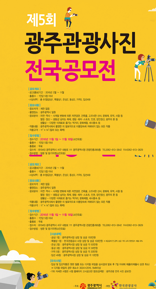 - 접수처 : 광주광역시 서구 내방로 111 광주광역시청 관광진흥과 (우편번호 : 61945)