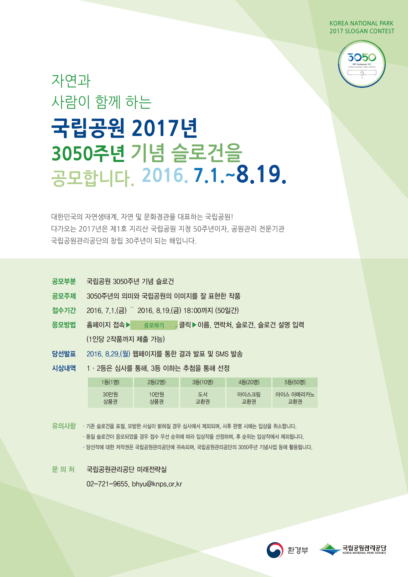- 부분: 국립공원 3050주년 기념 슬로건